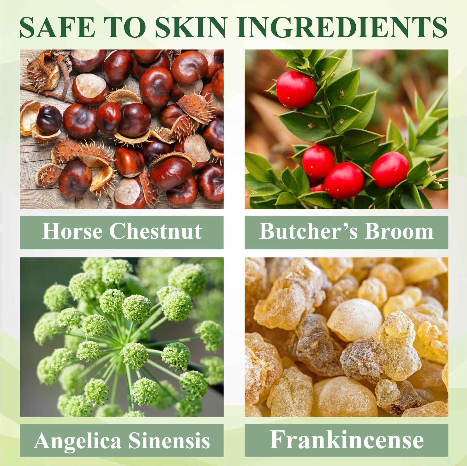 - Εκχύλισμα Ιπποκαστανιάς + Εκχύλισμα Ράσκου: Ενισχύουν τα τοιχώματα των αγγείων και μειώνουν τη φλεγμονή