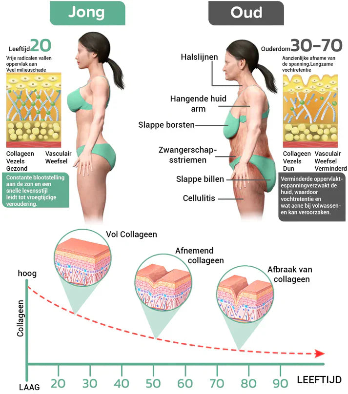 Η διαδικασία της γήρανσης σημαίνει ότι το σώμα εκτίθεται σε φυσικές επιδράσεις, οι οποίες συνήθως ξεκινούν γύρω στην ηλικία των 25 ετών. Αυτές περιλαμβάνουν τη μειωμένη παραγωγή κολλαγόνου, η οποία είναι σημαντική για τη διατήρηση της δομής του δέρματος, και τη μειωμένη ελαστικότητα ή τη διάσπαση της ελαστίνης, η οποία προσδίδει στο δέρμα ελαστικότητα. Οι αλλαγές αυτές είναι συχνά πιο ορατές στις γυναίκες. Επιπλέον, μπορεί να υπάρξει καθυστέρηση στην αποβολή των νεκρών δερματικών κυττάρων και μικρή μείωση στην παραγωγή νέων δερματικών κυττάρων, γεγονός που μπορεί να οδηγήσει σε χαλάρωση και ρυτίδες σε διάφορα σημεία του δερματικού ιστού του σώματος.