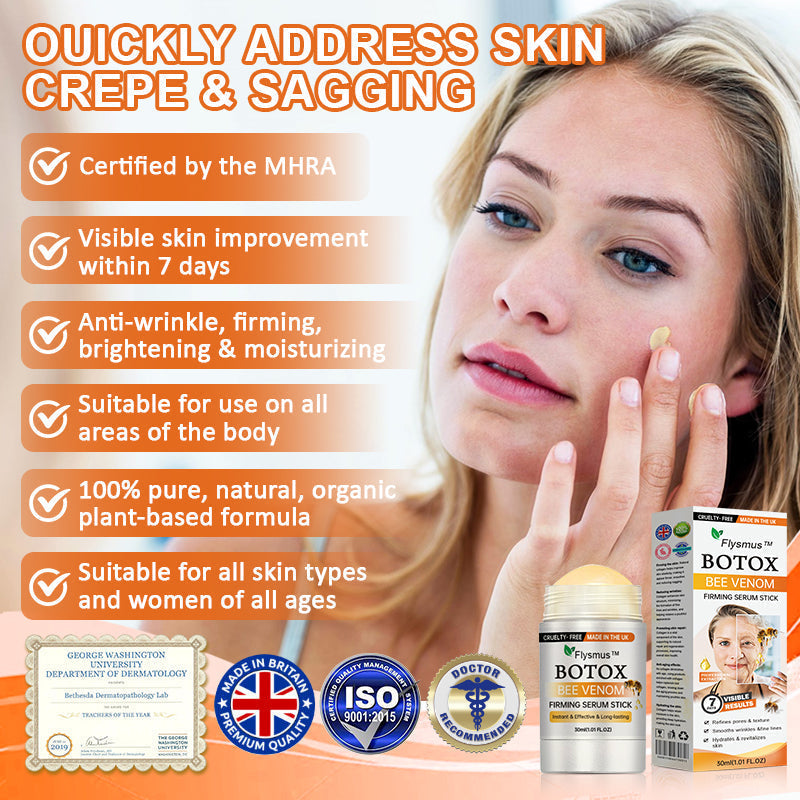 Κλινικά δοκιμασμένο από δερματολόγους, το Στικ Σύσφιξης με Δηλητήριο Μέλισσας και Εφέ Botox μπορεί να παρουσιάσει σημαντικές βελτιώσεις στις ρυτίδες και τη χαλάρωση του δέρματος μέσα σε 7 ημέρες.